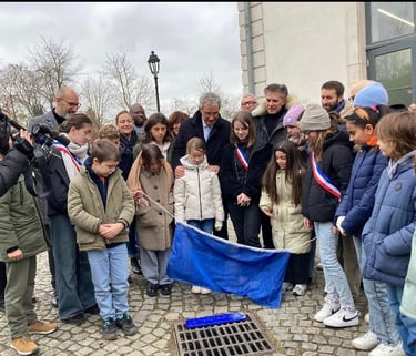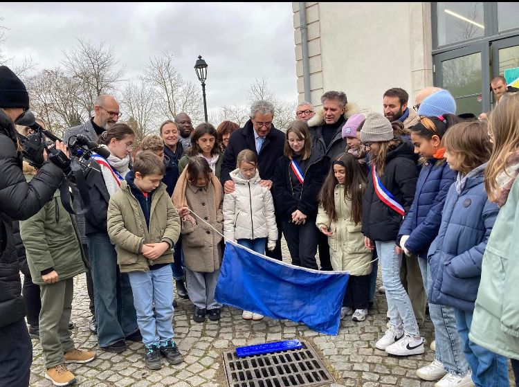 Nous avons inauguré des plaques "Ici commence la mer". Lors du premier conseil municipale des jeunes élus, nous avons posé des plaques en fonte pour conscientiser d'où part la pollution à la population de St Max.
